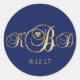Elegant Navy Blue Gold Monogram Wedding Classic Round Sticker