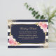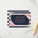 Elegant navy blue and white striped floral wedding insert card featuring watercolor blush pink, ivory and peach flowers and gilded greenery. Matching items available.