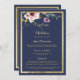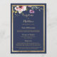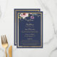 Elegant navy blue gold pink floral Wedding Menu