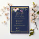 Elegant navy blue gold pink floral wedding RSVP Card