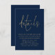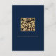 Elegant Navy Blue Gold QR Code Wedding Details A convenient option for your guests to view all the info they need on your wedding website by scanning a QR code. Details is in a set elegant script. Easily personalise the rest of the text to your own details and replace the sample QR code on the back with your own.
