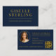 Elegant Navy Blue Gold Real Estate Agent QR Code Business Card