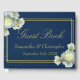 Elegant Navy Blue Gold Script White Roses Wedding Guest Book