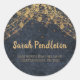 Elegant Navy Blue Gold String Lights Bokeh Address Classic Round Sticker