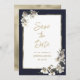 This gorgeous wedding invitation design features a lovely watercolor white, navy blue, and gold elegant tropical orchid floral Wedding Save the Date invitations that are perfect for any classy and sophisticated ceremony. This exquisite elegant tropical floral is perfect for the luxury and stylish couple. Customise this design with your message and personalised information. All designs are printed.