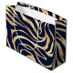 Elegant Navy Blue Gold Zebra Print Large Gift Bag