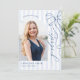 Celebrate your graduate's achievements with this elegant navy blue and white striped graduation announcement. Featuring a charming hand-drawn bow and the word 'graduate' in beautiful script, this design exudes sophistication and joy. The classic vertical stripes in soft blue and white create a timeless backdrop for your graduate's photo and announcement details. Perfect for announcing high school or college graduations, this invitation sets a refined tone for your special celebration. Make this announcement uniquely yours by adding your graduate's name, school, and graduation year.