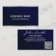 Elegant Navy Blue Metallic Professional QR Code Business Card