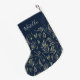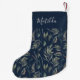Elegant navy blue modern minimal botanical script small christmas stocking