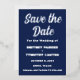 Modern, elegant, navy blue, QR Code, photo, silver foil, Wedding Save the Date. You can personalise it with your own details.