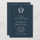 Elegant blue wedding invitation features a minimal design with a monogram crest. Modern script typography with classic serif font in white. To shop the complete line visit www.zazzle.com/dotellabelle