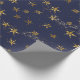 Elegant Navy Blue n Gold Snowflake Christmas Stars Wrapping Paper