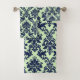 You can easily customise this elegant navy blue and light green vintage floral damask pattern by changing the light green background colour to uniquely make this towel set yours.