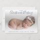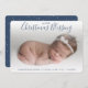 Announce the birth of your new baby boy or girl with this modern photo announcement card featuring the message, "Our Little Christmas Blessing" in an elegant blue handwriting font at the top. Add your baby's name and birth stats to the bottom. Use the template to add your own personal message to the back.