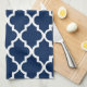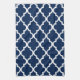 Elegant Navy Blue Quatrefoil Tiles Pattern Tea Towel