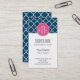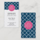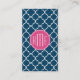 Elegant Navy Blue Quatrefoil with Pink Monogram Business Card