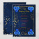 Enhance your reception tables with this elegant blue floral wedding menu card featuring a luxurious gold border. Designed with delicate navy blue watercolor flowers and a classic gold frame, this menu card perfectly complements blue and gold wedding themes.