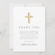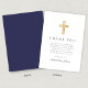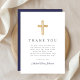 Elegant Navy Blue Religious Cross First Communion Thank You Card