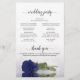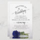 These wedding programs are elegant and tasteful, while still being budget friendly. The design features a single long-stemmed navy blue coloured rose lying on its side, reflecting in a pool of water with waves and ripples. The typography features lacy black script calligraphy, and there is room for details on the ceremony, the bridal party, and a short thank you.