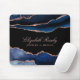 Elegant Navy Blue Rose Gold Agate Black Business Mouse Pad