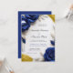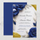 Elegant Navy Blue Roses & Gold Glitter Wedding Invitation