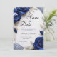 Elegant Navy Blue Roses & Silver Glitter Wedding Save The Date