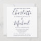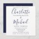Featuring elegant signature style names, this stylish simple navy blue and white all-in-one wedding invitation can be personalised with all your special wedding day information on the reverse including your RSVP, accommodation, and additional details. Designed by Thisisnotme©