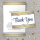 Elegant Navy Blue Script and Gold Stripes Folded Thank You Card