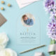Elegant Navy Blue Script Boy Photo Baptism Acrylic Invitations
