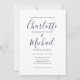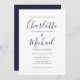 Elegant Navy Blue Signature Script Wedding Invitation