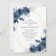 Elegant Navy Blue Silver Geometric Floral Wedding Invitation