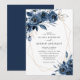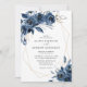 Elegant Navy Blue Silver Geometric Floral Wedding Invitation