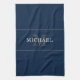Elegant Navy Blue Silver Monogram Custom Name Tea Towel