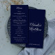 Your wedding day is a celebration of love and togetherness, and this beautifully crafted menu adds a touch of grace to the occasion. Featuring a classic navy backdrop with delicate silver lettering, it conveys timeless elegance while highlighting the carefully chosen dishes. Simple yet refined, it offers your guests a thoughtful guide through the meal and ensures everyone feels welcomed into your special day.