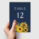 Elegant Navy Blue Sunflowers Wedding Table Number