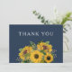 Elegant Navy Blue Sunflowers Wedding Thank You Card