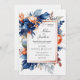 Elegant Navy Blue Terracotta Floral Boho Wedding Invitation