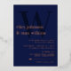 Elegant typography wedding invitation in navy blue with your soon to be shared initial in a darker shade of blue beneath your names in rose gold foil. Add names and wedding wording in rose gold foil. Gold foil and dark blue wedding invitation with your names in a large font and your monogram in dark dark blue beneath the text. A rose gold foil arrow detail.