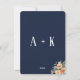 Dark blue menu card for formal events and weddings, with beautiful script typography . A simple yet elegant design inspired by boho vintage style, with monogram on the back.