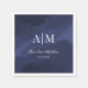 This minimalist wedding napkin features a navy blue watercolor background with white fonts, displaying the bride and groom's initials, names, and wedding date. The simple and elegant design integrates effortlessly with any wedding theme, including traditional, classic, nautical, celestial, or modern. Ideal for wedding receptions and cocktail hours, this napkin adds a sophisticated touch while remaining adaptable to various seasonal themes. The text is presented in a mix of calligraphy script typography and a classic serif font. The chic navy blue watercolor background and white font colours can be customised to match your specific colour scheme. Its understated elegance ensures it complements a range of wedding styles, making it a versatile choice for your special day. Simple Stylish Elegant Navy Blue Watercolor Monogram Wedding Napkin.