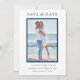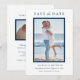 Save the Date! Announce your wedding in style with these simply elegant vertical save the date announcement cards that feature two of your favourite engagement photos and wording on the front and back of the card that can be personalised with all of the important details. A modern, clean, and timeless design. The navy blue and white colour scheme can be customised to coordinate with your photos or wedding colours.