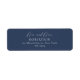 This sophisticated navy blue wedding return address label features elegant white script with "Mr. and Mrs." in stylish calligraphy. Personalised with the couple's last name and address, this timeless and classy label adds a refined touch to wedding invitations, thank-you cards, and other wedding stationery. A perfect choice for formal and modern wedding themes.