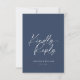 This elegant navy blue RSVP card features a sophisticated and modern calligraphy design with "Kindly Reply" in stylish white script. Personalised with the couple's names and wedding date, this refined invitation response card is perfect for formal and timeless wedding themes. A great way to collect guest responses while adding a touch of elegance to your wedding stationery.