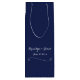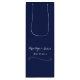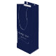 Elegant small navy blue wedding wine gift bags with changeable white text and decorative graphics