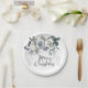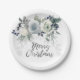 Merry Christmas paper plate depicts an elegant white and navy blue rose watercolor floral design.*