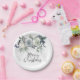 Elegant Navy Blue White Rose Merry Christmas Paper Plate