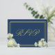 Set the style and elegance of your special day with this simple yet stylish design with elegant gold script typography and delicate white rose on a navy blue background and RSVP information on the back with a gold on soft gold background. Include this RSVP card with your invitation to receive your numbers for your guests list and to retrieve your guests selection of your menu options. As menus will be different for each wedding you might need some help spacing the text that you require so if you need help personalising the card then please send me an email and I would be happy to help. designsbykatz@gmail.com Congratulations on your special day!