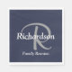 Enjoy these elegant paper napkins featuring your name over your monogram in modern script typography on a navy blue background. Text templates are provided for your monogram (in light grey), name and optional "Family Reunion" event (in white).