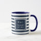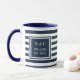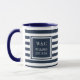 Elegant Navy Blue White Stripe Monogram Name Mug