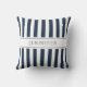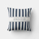 Personalised Elegant Navy Blue & White Stripes Pattern Name Print Throw Pillow
